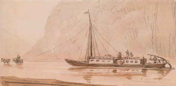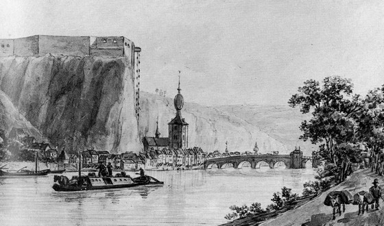 la rive glissant paisiblement en direction de Namur. Les chevaux des haleurs sont embarqués à